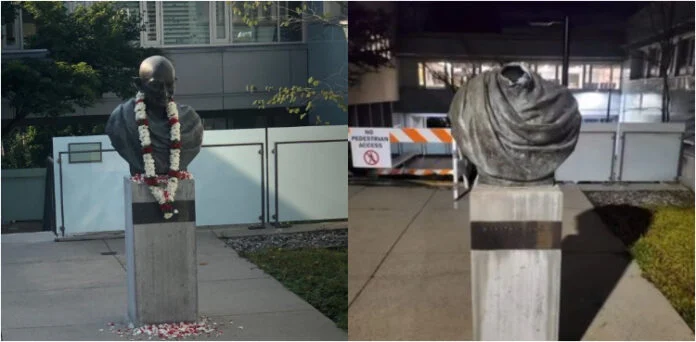مہاتما گاندھی کا مجسمہ توڑ دیا گیا