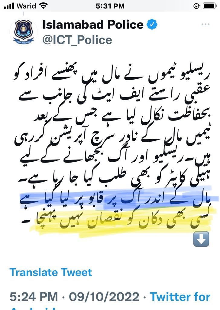 اسلام آباد سینٹورس مال میں اچانک آتشزدگی ؛ ٹویٹر By نیوز ڈیسک Last updated اکتوبر 9, 2022 Share Fire erupts Centaurus Mall in Islamabadآتشزدگیاسلام آبادسینٹورس مال Share