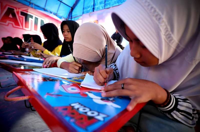 انڈونیشیا ، زلزلہ سے متاثرہ گاوں میں قائم عارضی سکول میں…