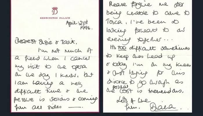 شہزادی ڈیانا کے طلاق کے دوران لکھے خطوط لاکھوں پونڈز میں…